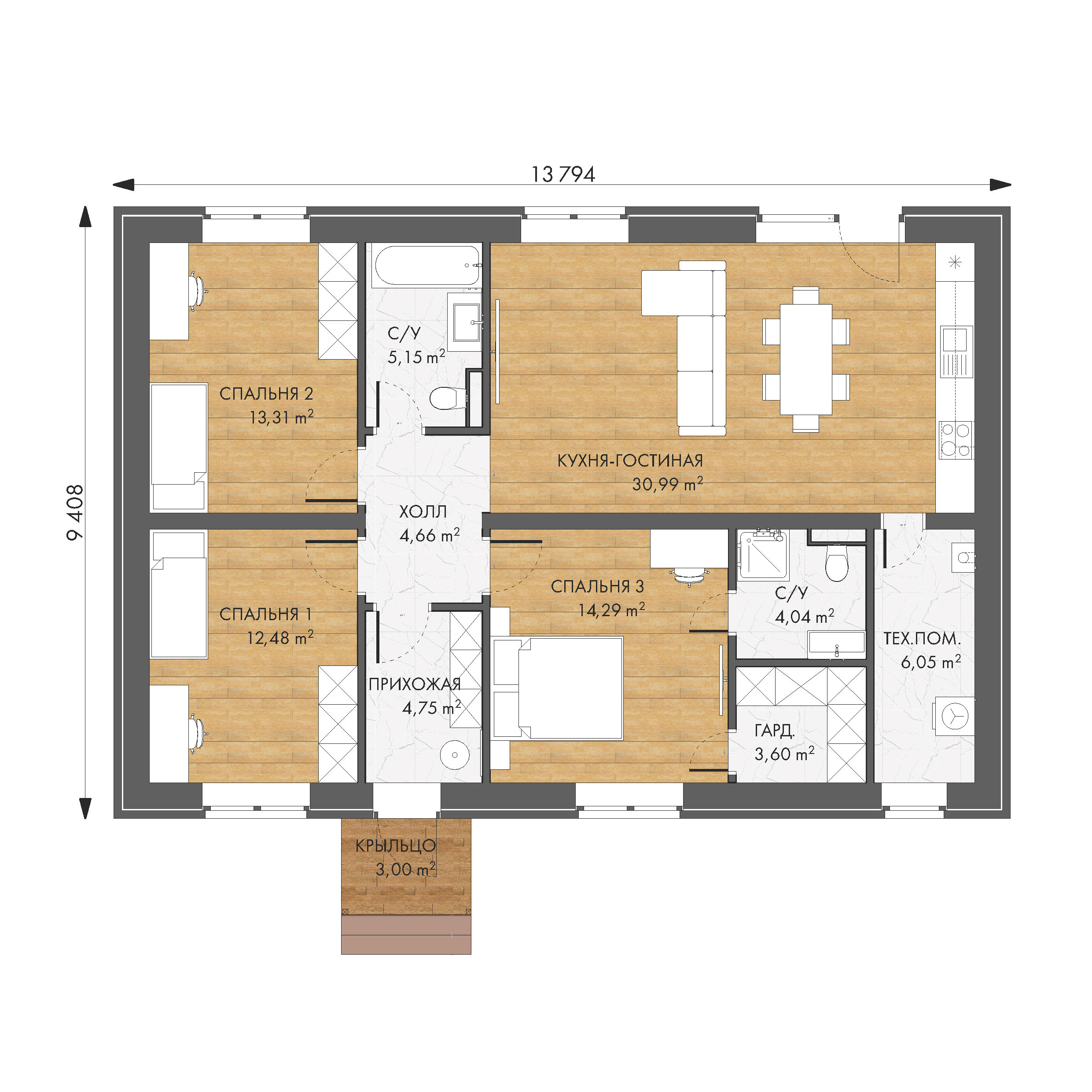 Размер: 11.79 х 9.4 м.